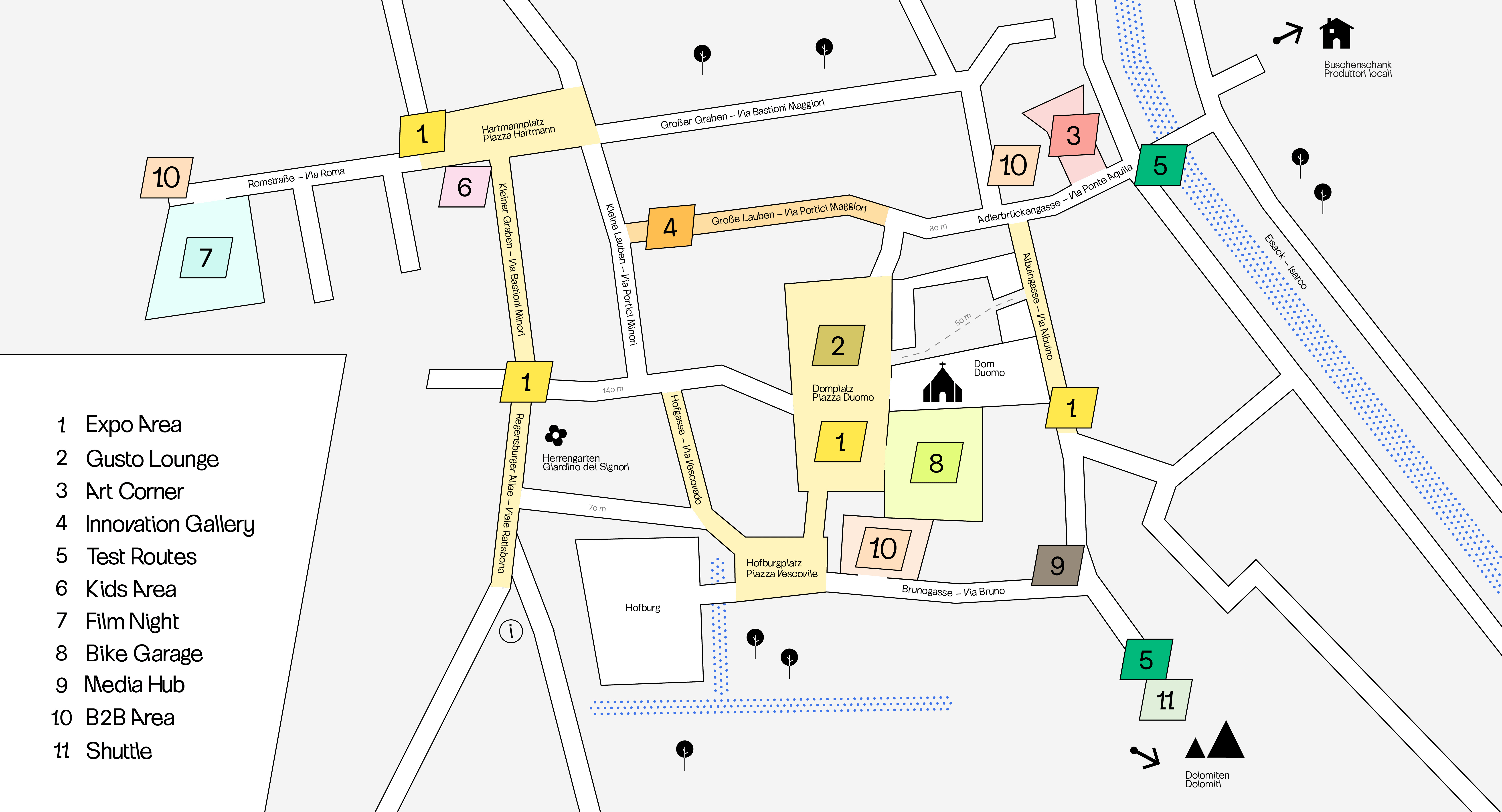 La bike festa Südtirol si rivolge in primo luogo agli ospiti provenienti dall’area DACH. Bressanone è una delle prime mete sul versante sud delle Alpi e, grazie alla sua posizione immediatamente a sud del Brennero e alla vicinanza all’autostrada e alla linea ferroviaria del Brennero, è facilmente e comodamente raggiungibile. Naturalmente saranno presenti anche brand e appassionati italiani: pur ponendo il focus sui mercati di lingua tedesca, la bike festa si propone come piattaforma aperta e internazionale, capace di mettere in dialogo realtà e competenze diverse.